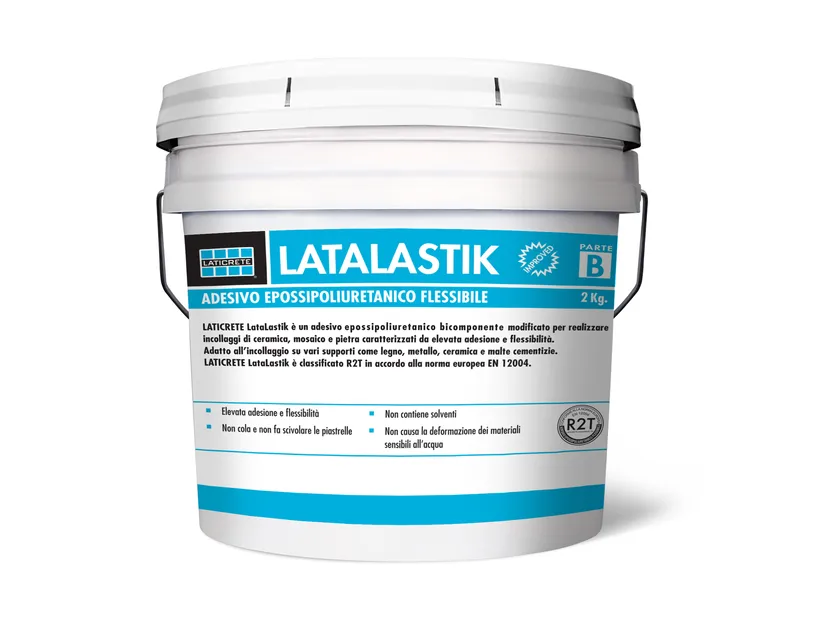 LATALASTIK yra didelio stiprumo ir lankstumo epoksidiniai poliuretano klijai, skirti keraminėms plytelėms, mozaikinėms plytelėms, natūralaus akmens, marmuro aglomerato ir kompozitinių akmenų klijavimui, atitinka EN 12004 R2 T,