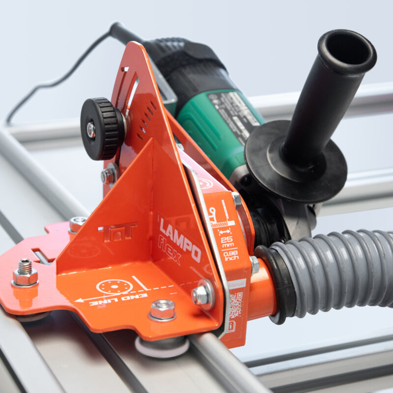 Lampo Flex System – tai novatoriška sistema, susidedanti iš trijų pagrindinių elementų: aliuminio strypų, pritraukėjų ir Lampo Flex. Pastarasis yra priedas, skirtas praktiškai ir efektyviai išnaudoti kampinį šlifuoklį, leidžiantį pjauti didelio formato plyteles. Galima prijungti dulkių įšsiurbimo sistemą, todėl ji yra universalesnė darbo aplinkoje. Jis suderinamas su M14 priedu ir naudoja 115 mm skersmens diskus.