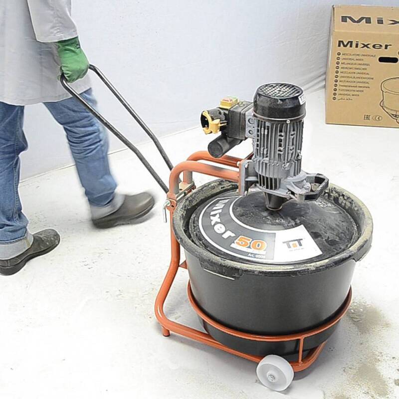 Universali elektrinė plytelių klijų, cemento, dažų, epoksidinės dervos ir kitų medžiagų maišyklė. Lengvai transportuojama, vienu kartu sumaišoma iki 50 kg medžiagos