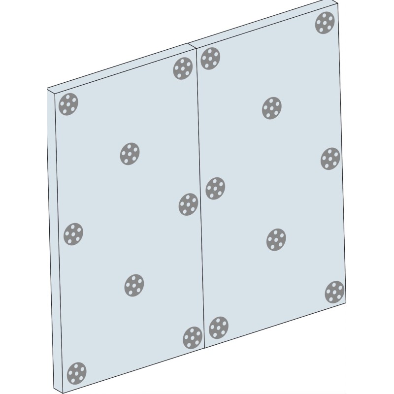 Konstrukciniai tvirtinimo diskeliai, kuriose yra skylės varžtams. Tvirtinimo diskeliai naudojami tvirtinti plokštė prie sienos ją sukant prie karkaso (medinio, metalinio ir pan.).